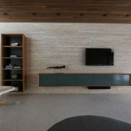 Mẫu kệ tivi treo kết hợp nội thất tủ và lam giả vách ốp phòng khách