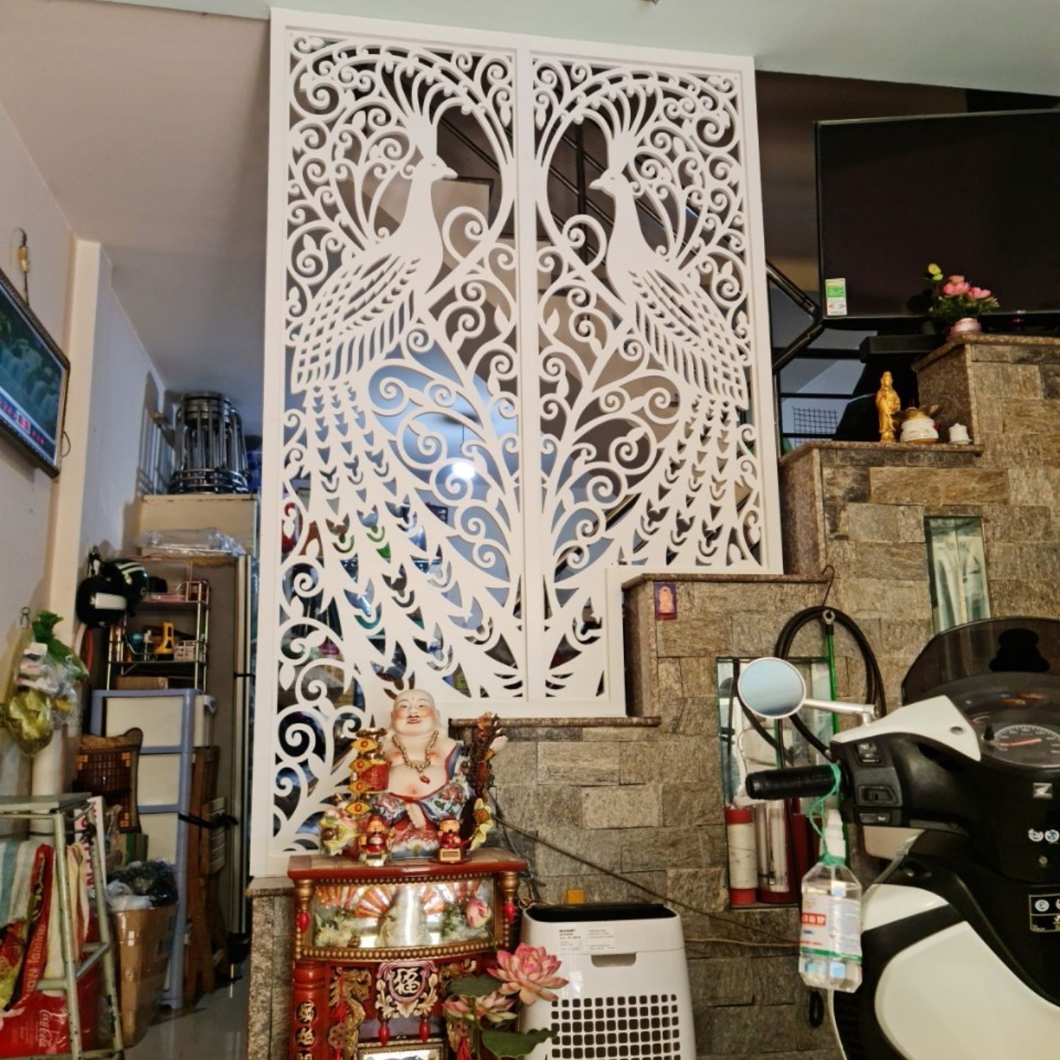 Vách ngăn cnc ông địa – thần tài mang tính ứng dụng cao trong nội thất thờ cúng ngăn khu vực thờ cúng với các khu vực sinh hoạt khác. Mang tính thẩm mỹ cao, tạo không gian riêng tư và đặc biệt hơn có đa dạng mẫu mã phù hợp với kiến trúc mỗi ngôi nhà.