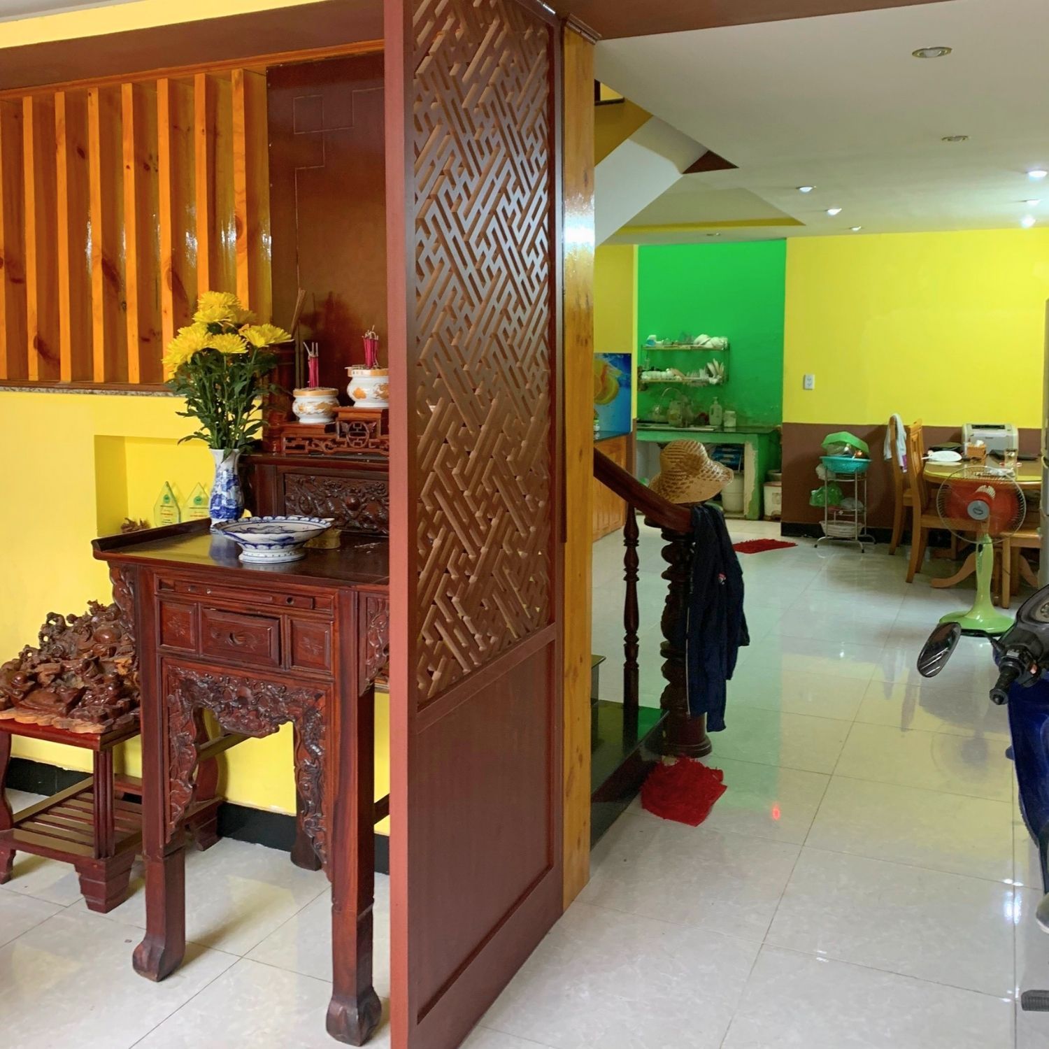 - Tạo sự riêng tư và tách biệt không gian: Vách ngăn giúp tách biệt không gian phòng thờ với những không gian khác trong nhà, tạo ra sự riêng tư và thanh tịnh cho khu vực bàn thờ.