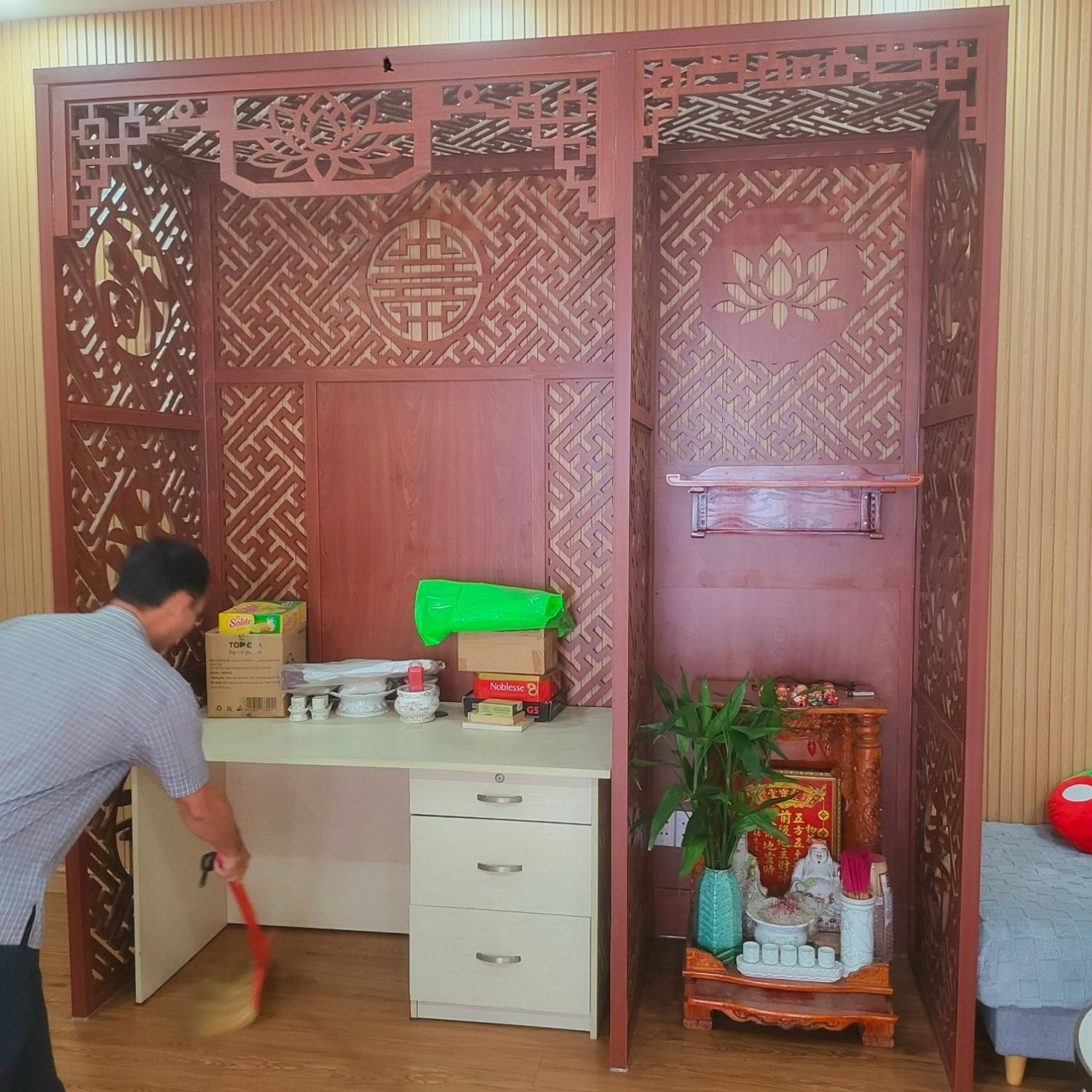 Vách phòng thờ cho ngôi nhà hiện đại - Vách ngăn mang lại sự trang nghiêm, tinh tế cho không gian thờ cúng.